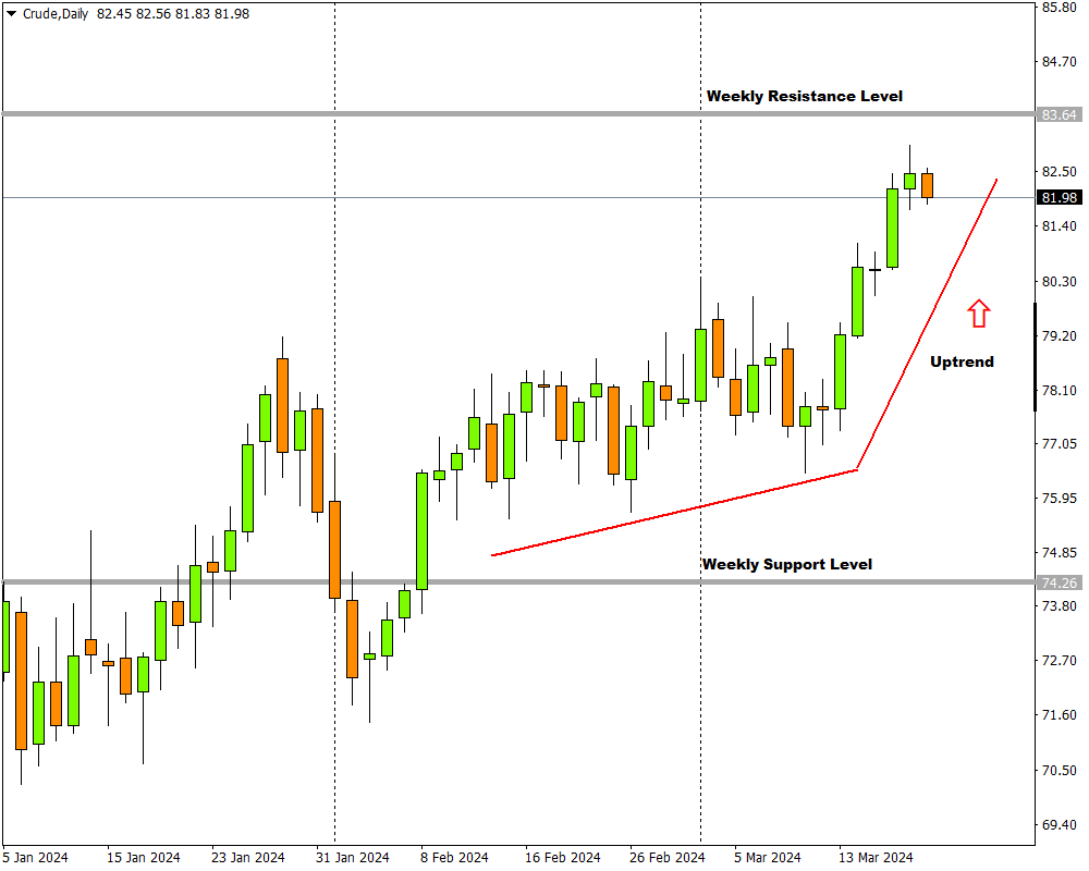 - Oil prices could extend gains if the central bank strikes a dovish tone and signals that three rate cuts are still on the cards in 2024.