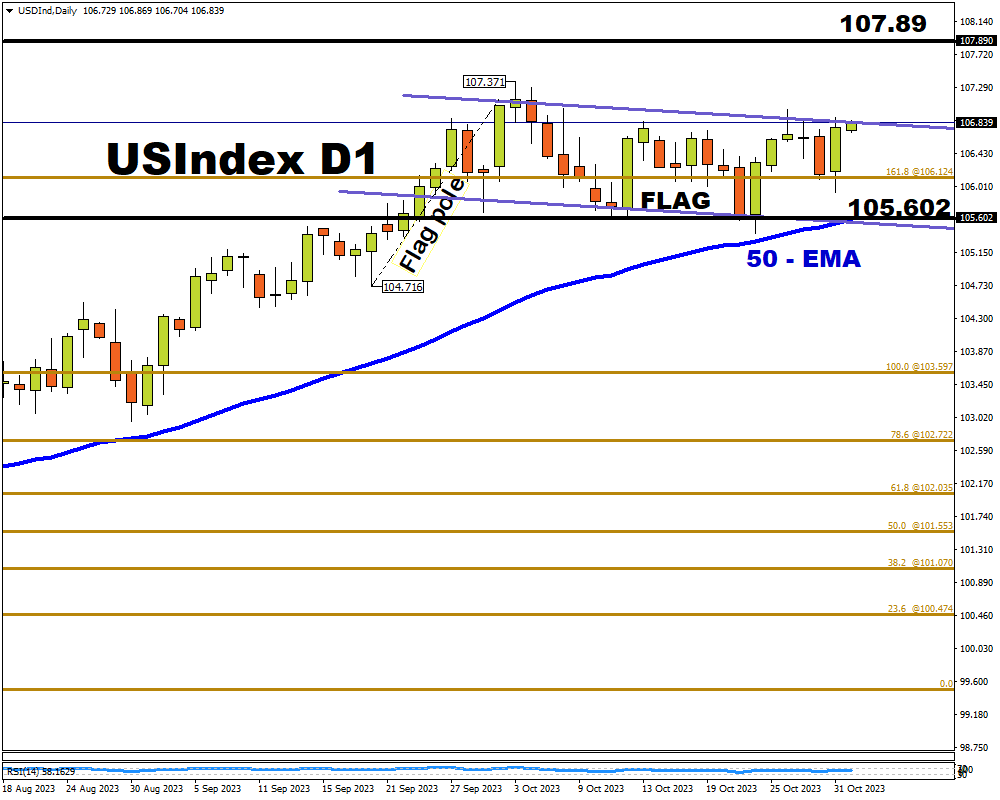 From a technical perspective, more gains may arrive if we see a strong breakout above the flag’s resistance around 106.87, the flag's resistance which is being tested currently).