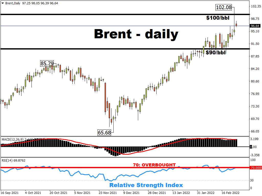 Brent crude pared a 9% gain to 2.3% in a tumultuous session, and actually closed below the $100 level on the close as sanctions didn’t target oil and gas exports. But the escalation and uncertainty in the Ukraine crisis remains high with prices rising again this morning.