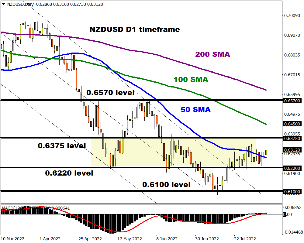 Since punching back above 0.6850 back in mid-July, the AUDUSD has been trapped within a range. Support can be found at 0.6850 and resistance at 0.7050. Given how prices are trading above the 50-day SMA and the MACD is above zero, bulls have a platform to push prices higher. However, the currency pair could be waiting for a fundamental catalyst to experience a breakout/down.