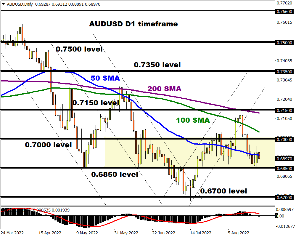 An appreciating dollar could drag the AUDUSD out of its current range with a breakdown below the 0.6850 support opening a path back towards 0.6700. Should 0.6850 prove to be a tough nut to crack, prices may rebound back towards 0.7000.