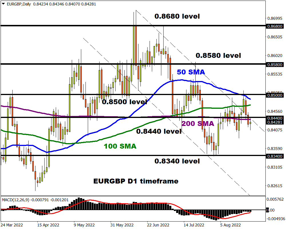 As the subtitle says, the EURGBP is trading below the 200-day Simple Moving Average. This is a bearish sign and could result in further downside if 0.8440 proves to be reliable resistance. A EURGBP selloff may take prices back towards 0.8340.