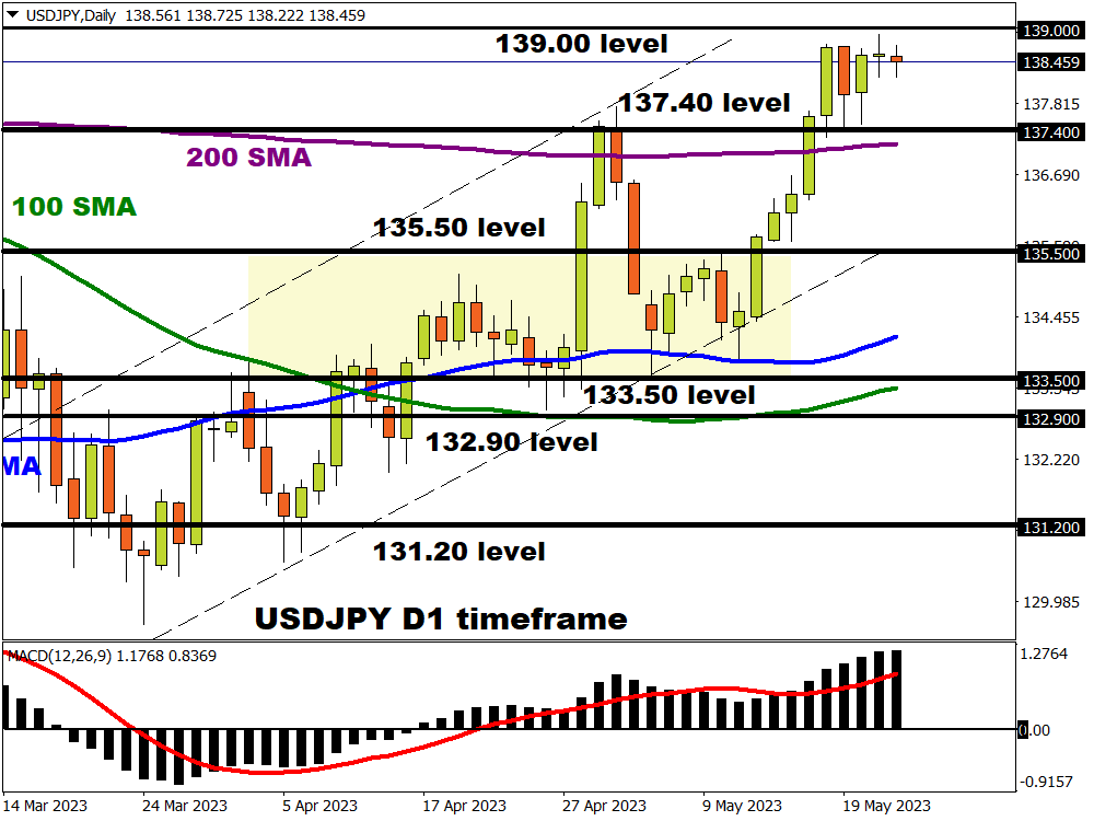 After creating a fresh higher low of around 137.40, USDJPY bulls continue to eye higher levels. Further upside could be expected if a solid daily close above 139.00 is achieved. If prices slip back below 137.40, tough support around the 200-day SMA may limit downside losses.