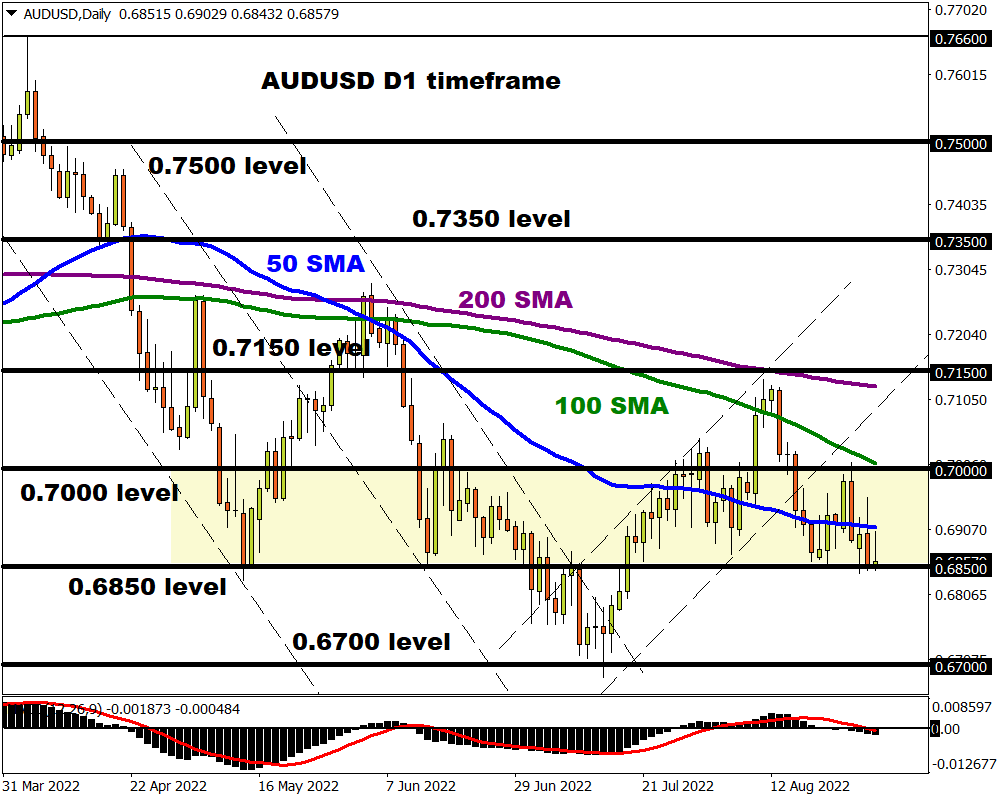 A solid breakdown below 0.6850 could encourage a selloff towards 0.6700. If prices manage to keep above 0.6850, a rebound towards 0.7000 may be a possibility.