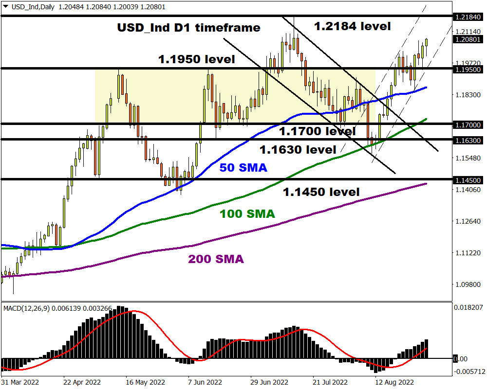 Just like the DXY, the equally weighted USD index remains bullish on the daily charts. There have been consistently higher highs and higher lows while the MACD trades to the upside. The upside momentum could take prices towards 1.2184 and potentially higher. A move back below 1.1950 may open the doors back towards the 50-day Simple Moving Average at 1.1860.