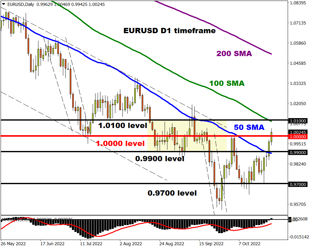 As the dollar struggles across the board, this has offered an opportunity for currencies to fight back. Euro bulls wasted no time in pushing the EURUSD back above parity for the first time in five weeks. With dollar bulls missing in action amid Fed pivot hopes, and the ECB expected to raise rates by 75 basis points on Thursday, this has propelled the EURUSD towards 1.0030. A daily close above parity could encourage a move towards 1.0100 in the short term. If parity proves to be unreliable support, we could see a decline back toward 0.9900.