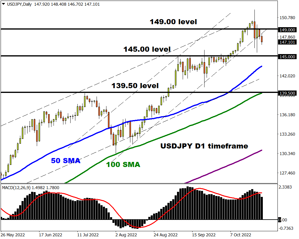 After creating consistently higher highs and higher lows, USDJPY bulls could be taking a break. Prices are trading back below 149.00 thanks to fundamental forces and may sink lower due to a weaker dollar. Bears may target 145.00 and 143.50 which is where the 50-day SMA resides.