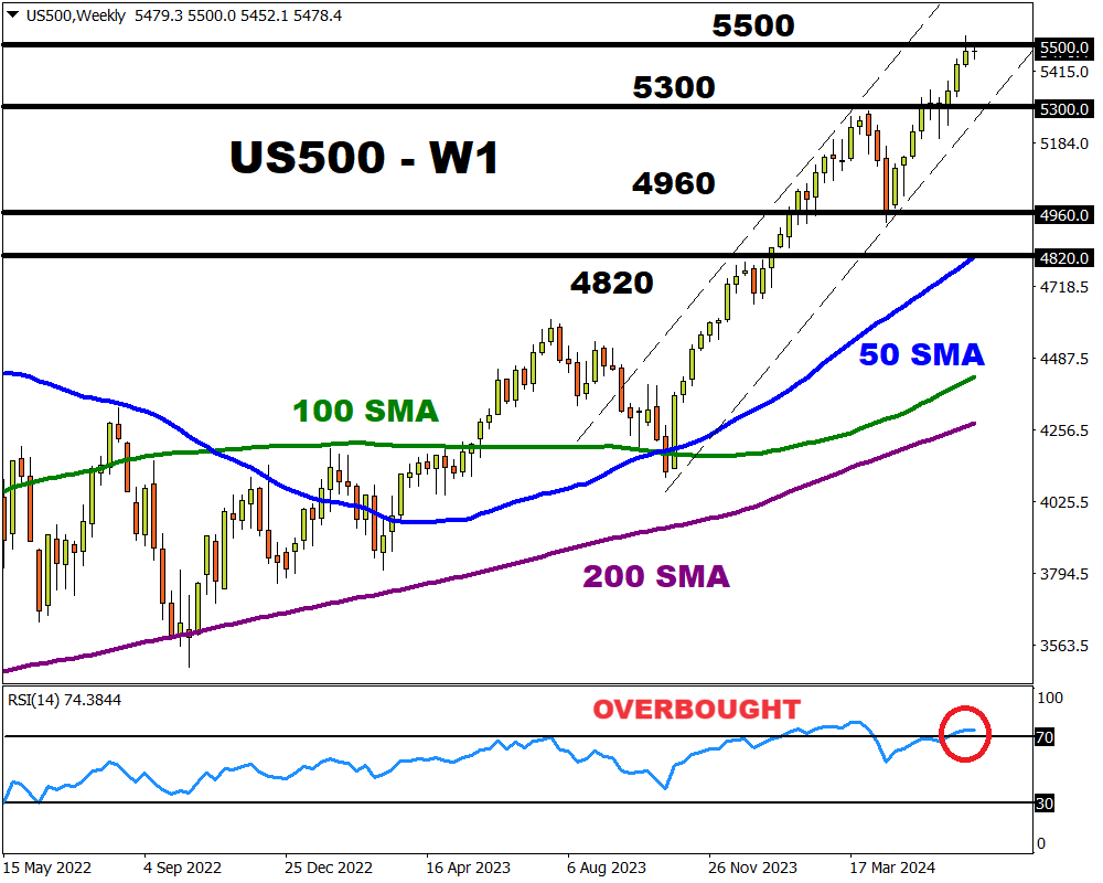 - A solid weekly close above 5500 could pave the way to fresh all-time highs.