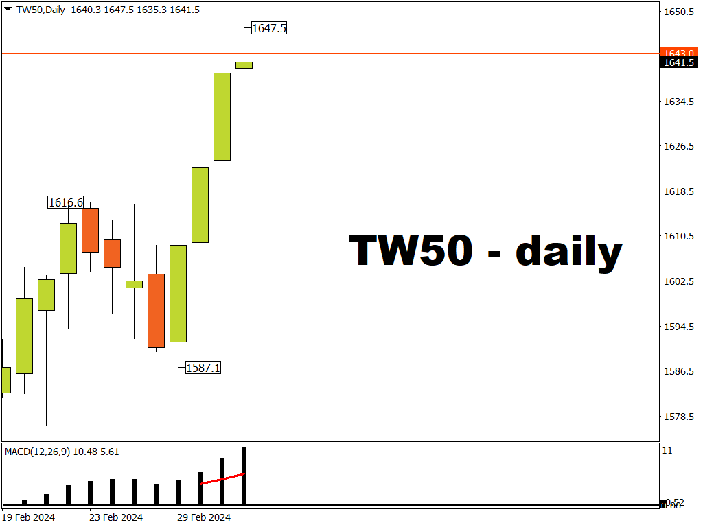 The TW50 has posted its highest-ever intraday price of 1647.5 today (Tuesday, March 5th)!