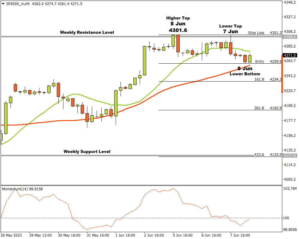 - Alternatively, should the resistance level at 4301.3 is broken, the above scenario is cancelled and must be re-assessed.