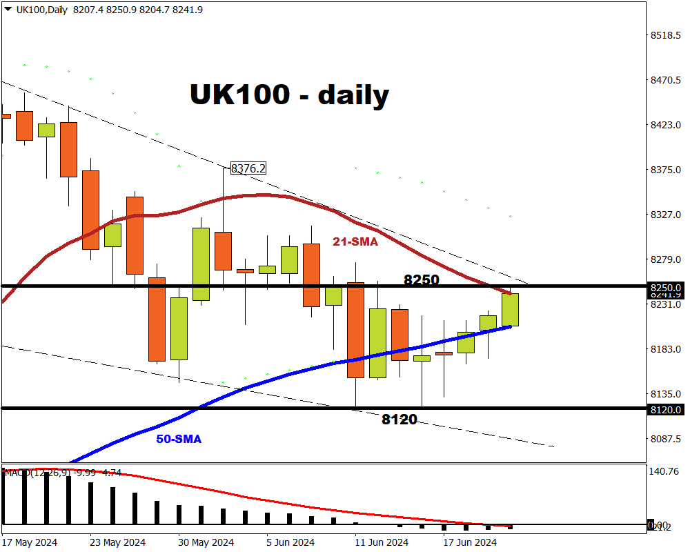 - UK100 index may push higher: if the BOE signals that its rate cut might happen sooner (August?) rather than later (September?)”