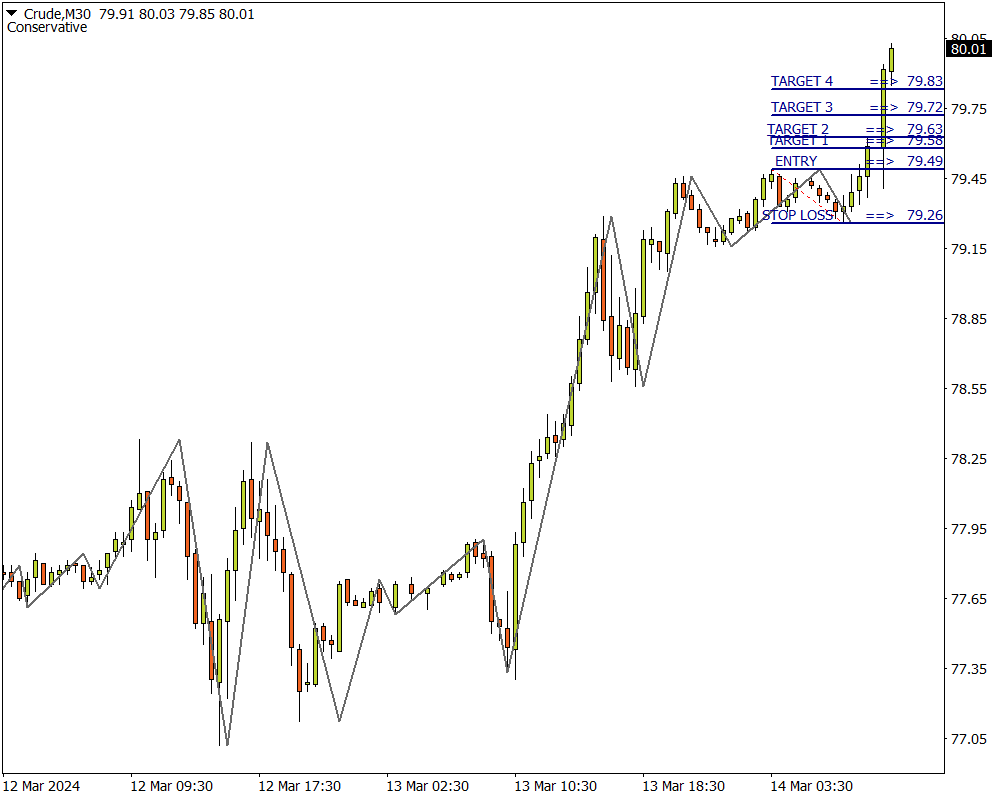 Traders who entered at $79.49 and exited at the final target level of $79.83 would have gained 34 points.