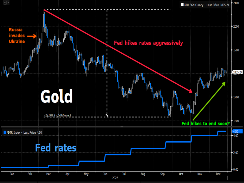 But for proper context, spot gold has embarked on a remarkable recovery since early November on hopes that the “worst” of the Fed rate hikes are over, offering some relief for the precious metal after a brutal year.