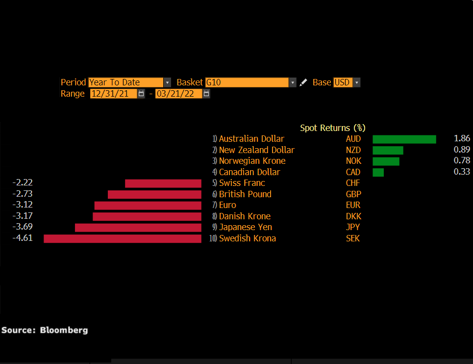 Before we discuss how these factors and themes could influence the dollar's trajectory, it is worth keeping in mind that March has been a mixed month for the dollar thus far. However, it is a different story year-to-date with the greenback still maintaining some grip on the FX throne.