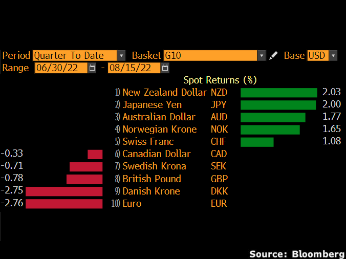 But the scales of power seem to be veering in favour of bears in Q3 as the fundamental drivers shift. This can be reflected in the currency’s mixed performance since the start of July.