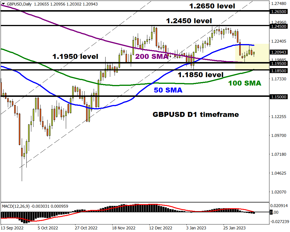 Outside of the UK, investors will be paying very close attention to the US inflation report on Tuesday. Inflation is expected to have cooled further to 6.2% in January compared to the 6.5% witnessed in December. A report that meets or prints below market projections is likely to not only pour cold water on the renewed Fed hike bets but also weaken the dollar. A weaker dollar could trigger a bounce on the GBPUSD.