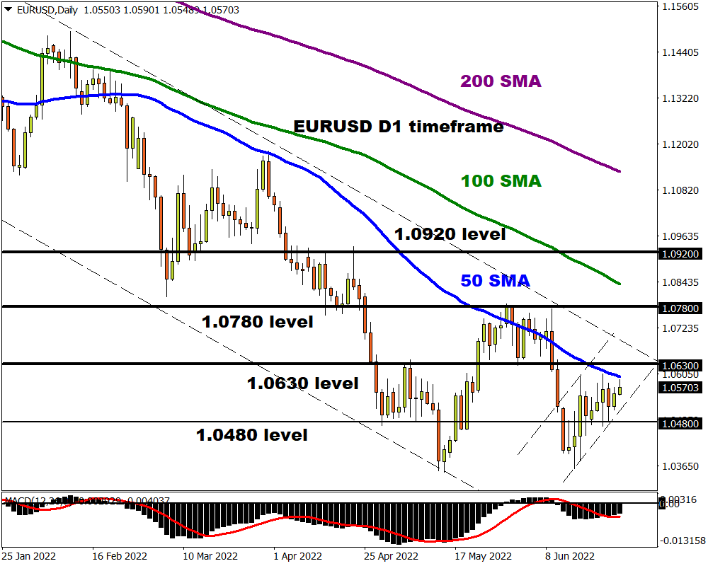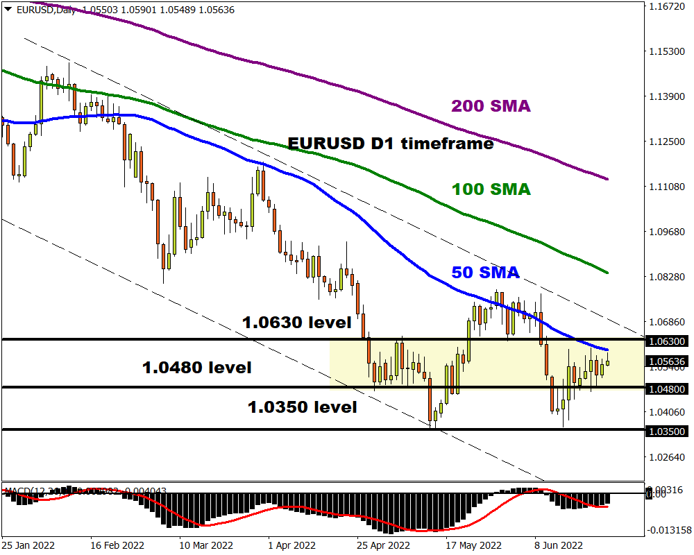- Prices remain trapped within the 1.0480 support and 1.0630 resistance level with a possibility of sinking back towards 1.0350.
