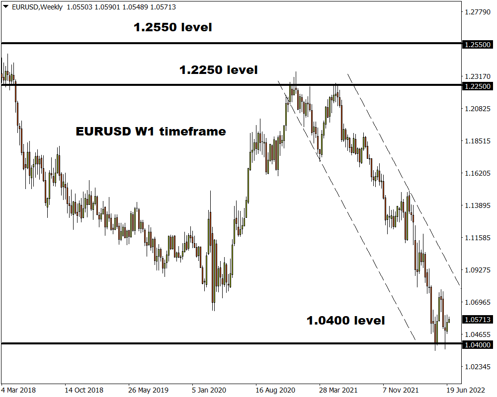 Over the past few weeks, the EURUSD has been trapped within a wide range with support at 1.0350 and resistance at 1.0780. Although the overall trend remains bearish, there seems to be a struggle between bulls and bears and this continues to be reflected in price action.
