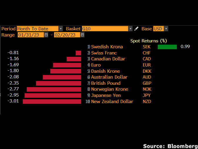 Freakishly strong US economic data since the start of the month (NFP) coupled with a hot US CPI forced investors to re-evaluate Fed rate hike expectations. Markets expect the Fed to raise interest rates by 25bp in March with the Fed funds expected to peak around 5.3% by Summer. Given how the central bank is expected to pause and eventually start cutting rates in the longer term, dollar bulls may be rallying on weak foundations with bears lingering in the vicinity.
