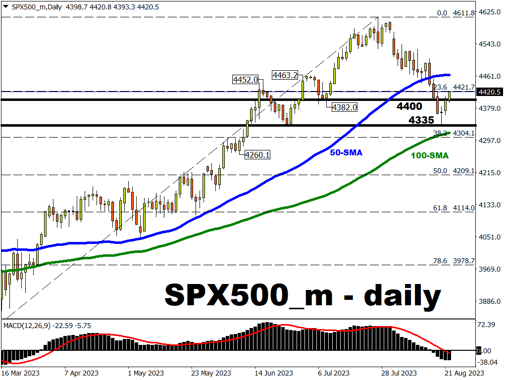 The SPX500_m has broken past the psychologically-important 4,400 mark, making an about-turn after halting a four-day drop.