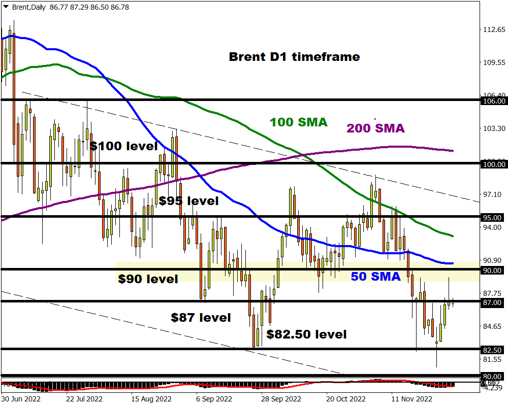 It's all about the upcoming sanctions on Russian oil which are expected to start on Monday 5th December. Back in June, the EU agreed to ban the purchase of Russian crude in an attempt to limit its earnings – ultimately impacting Moscow’s budget. According to Bloomberg, the EU is closing in a deal to cap Russian crude oil at $60 a barrel before the Monday deadline. Should this deal go through, it could have uncertain effects on the price of oil as concerns over lost supply through the price cap clash with fears over a gloomy demand outlook. Whatever the outcome on Sunday and Monday, it will most likely set the tone for oil as 2022 slowly comes to an end.