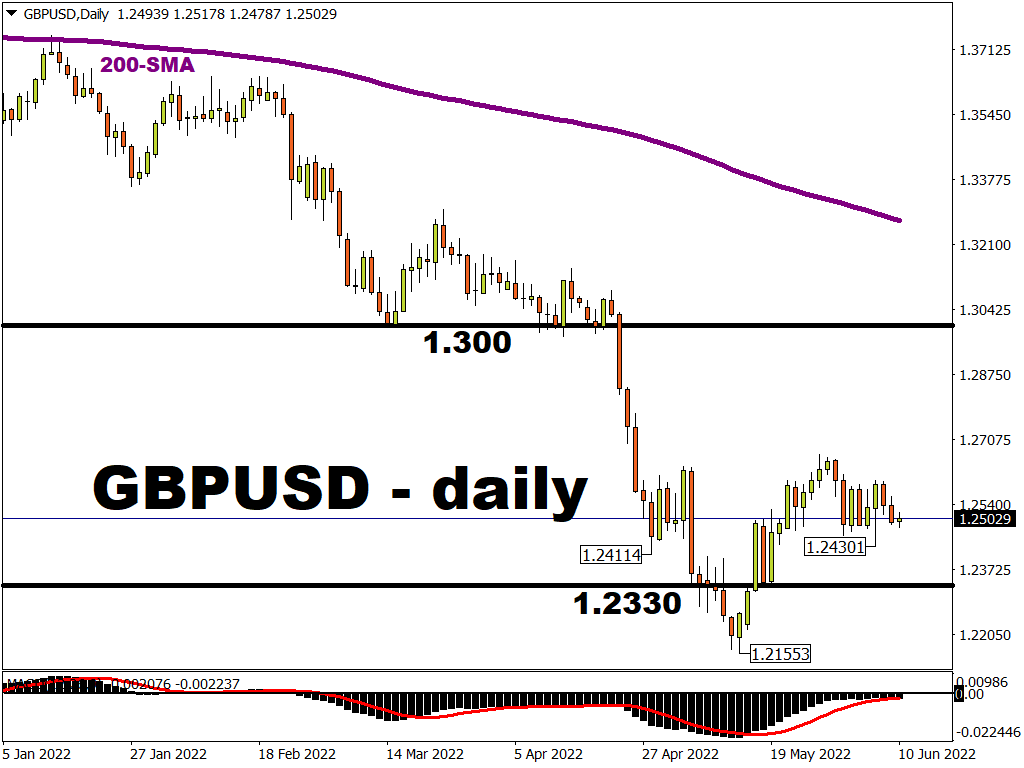 If the BOE does so, and markets unwind their rate hike expectations, that could prompt GBPUSD to move back closer to its mid-May lows, provided the Fed can stick with its ultra-hawkish stance.