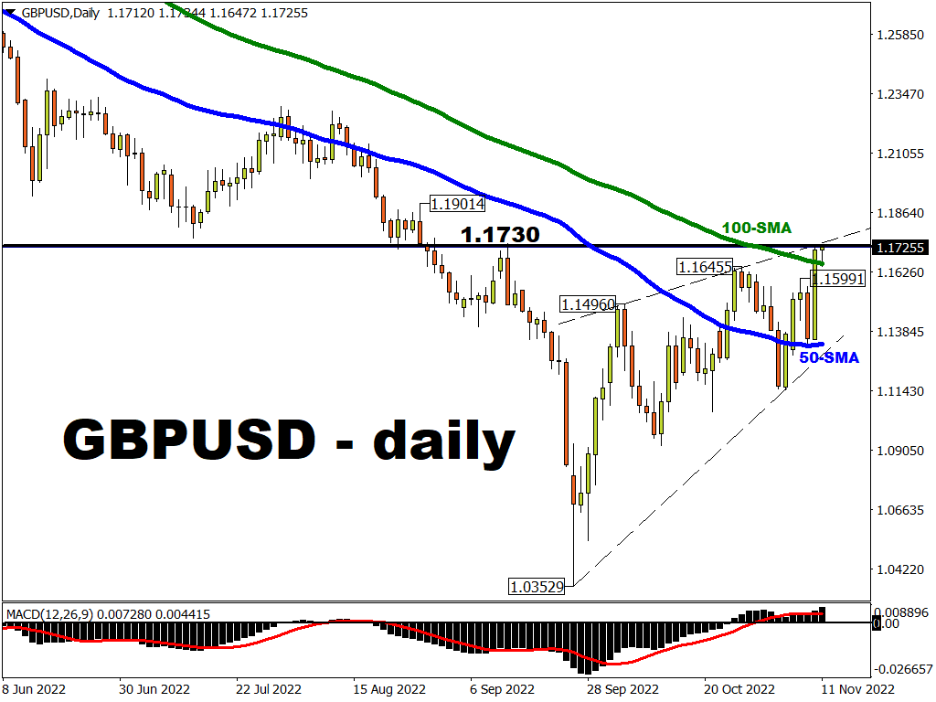 GBPUSD is about to head into this weekend on a 2-month high, having surged back above its 100-day simple moving average (SMA), thanks to the US dollar’s post-CPI tumble.
