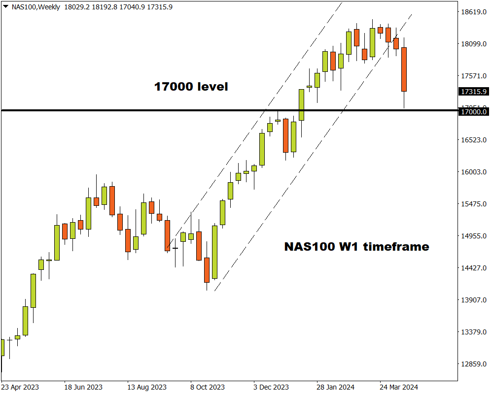 FXTM’s NAS100 which tracks the underlying benchmark Nasdaq 100 index is under the spotlight after shedding over 4% this week.