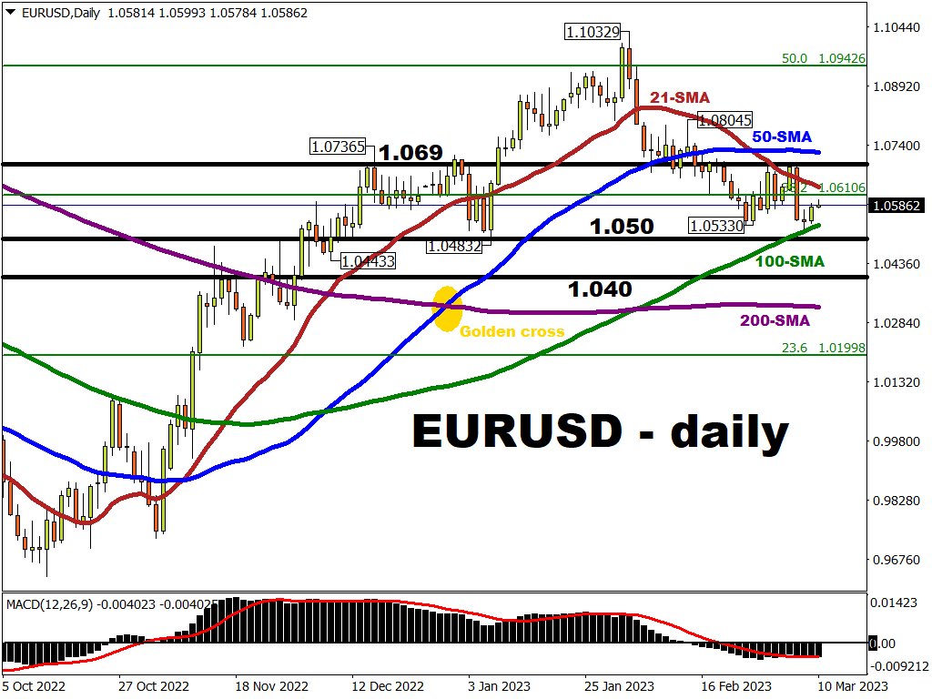 - However, if the ECB strikes a more dovish tone and opens the door for a downshift towards a relatively smaller 25-bps hike for upcoming meetings, that could weigh on EURUSD and potentially drag it below its 100-day SMA and into sub-1.05 domain, depending on where this FX pair ends up by the weekend.