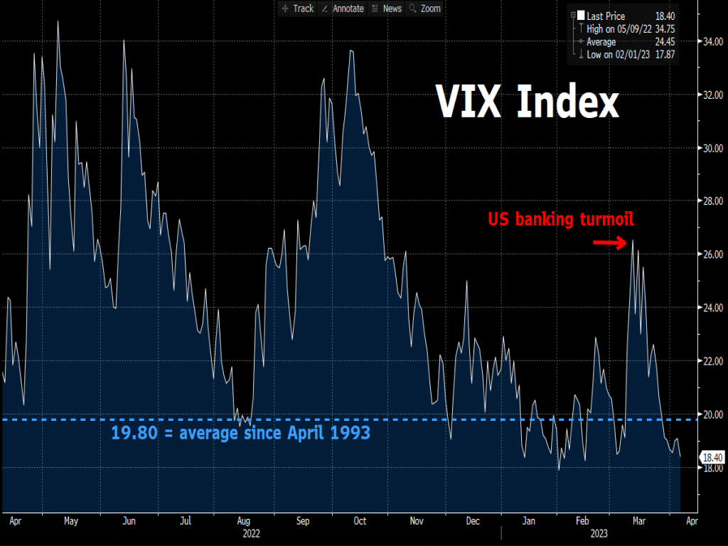 With the VIX now at 18.40, that’s also lower than the 19.80 level that’s been its average reading over the past 30 years.