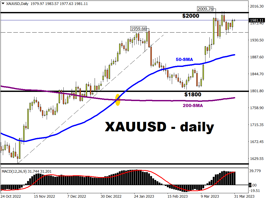- Weaker-than-expected US jobs report = reinforce market bets for Fed rate cuts in 2023 = gold may stay above the psychologically-important $2,000 mark.