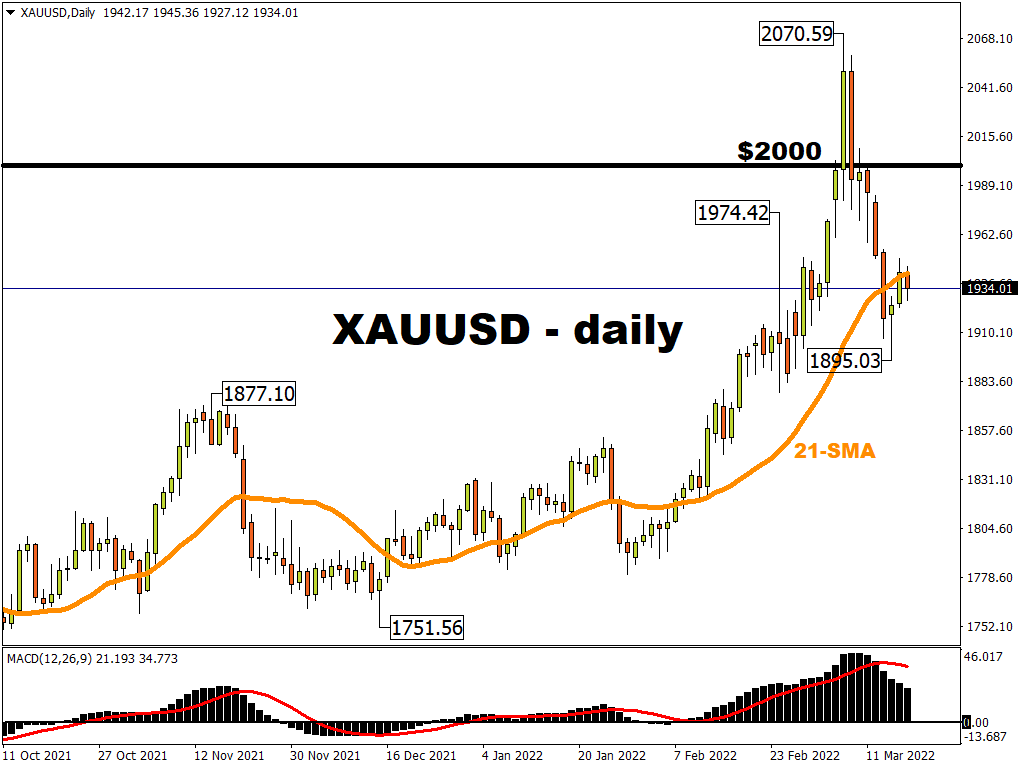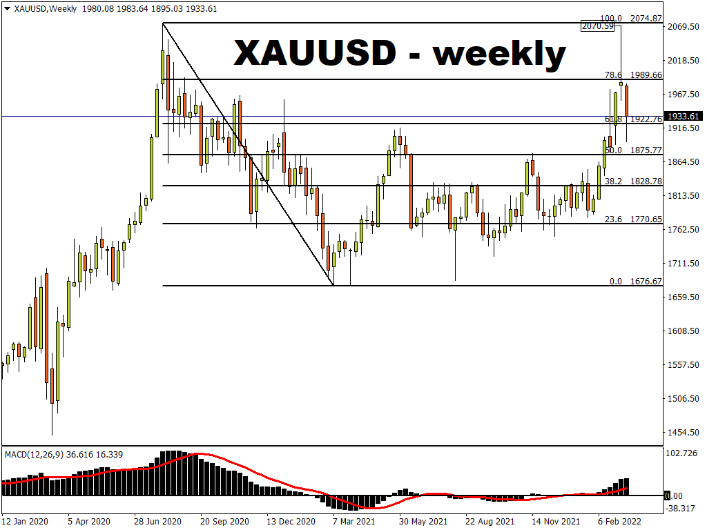 However, since then, the precious metal has been brought back down to earth, even dipping below $1900 earlier this week, as markets refocused their attentions to the Fed’s path forward for US interest rates.