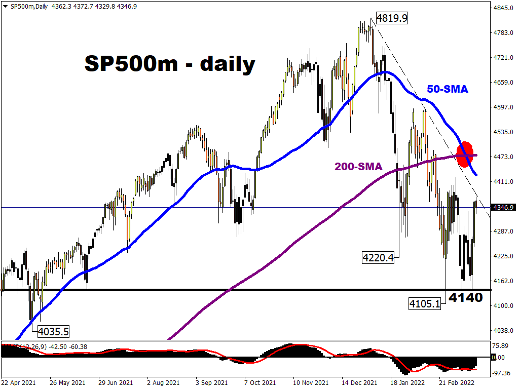 However, if there are more signs that the Fed is willing to press ahead with rate hikes, perhaps foregoing economic growth in order to bring down consumer prices, that could trigger more selling in the S&P 500 and drag it closer to the psychologically-important 4k mark.