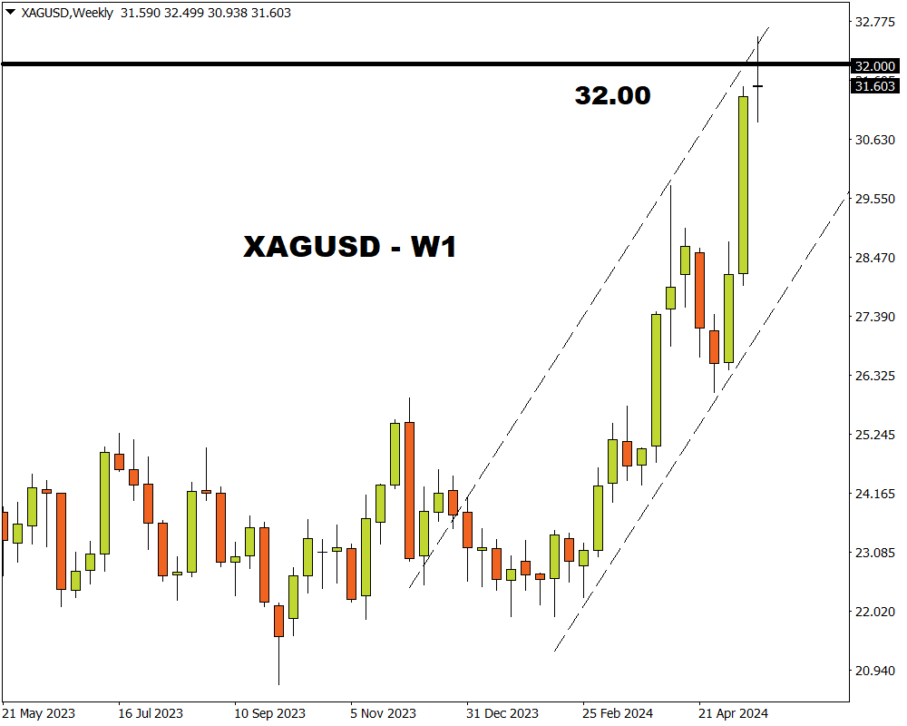 The precious metal punched above $32 this week, and is currently up 33% since the start of 2024.