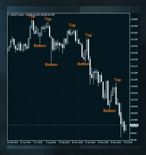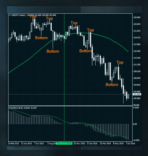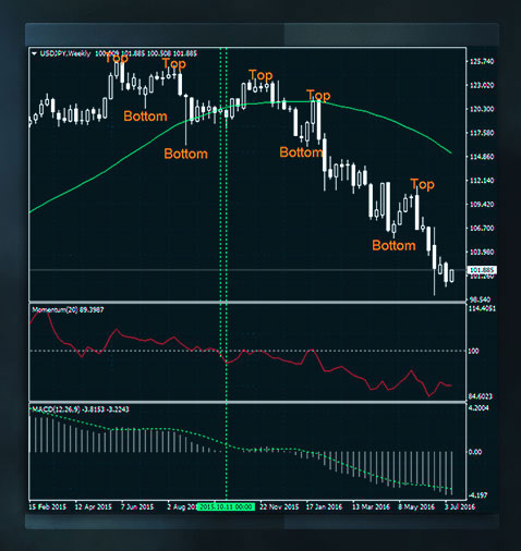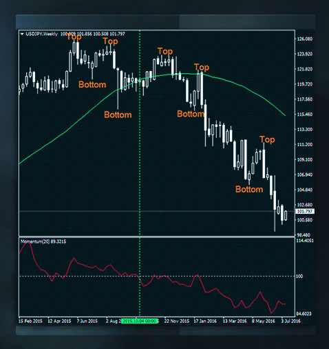 發現趨勢一般的方法是目測。找到連續的更高的頂部和更高的底部表明趨勢向上,出現連續的更低的頂部和底部表明趨勢向下。等高的頂部和等高的底部表明市場橫盤整理、無趨勢。 盡管判斷頂部和底部事後看來非常簡單,交易員、尤其是初學者發現很難找到當前的趨勢,這的確需要一些練習。判斷趨勢另一個常用的方式是在價格圖表上附加用來找到市場方向的技術工具。技術指標和震蕩指標 就屬於這一類別,它們基於歸納統計等統計學概念。