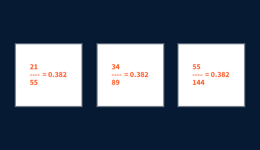 此外,任何數與序列中前面第二位數字的比值總是0.382。