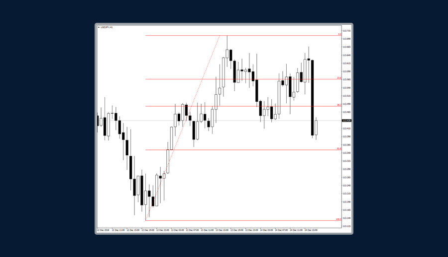 在交易中,這些比率也被稱為回撤位。交易員等待價格接近斐波那契數列的水平,並根據他們的策略采取行動。通常,他們開倉前在這些廣受關注的回撤位尋找反轉信號。這三個水平中最常用的是0.618——黃金比率(1.618)的倒數,用希臘字母φ表示。