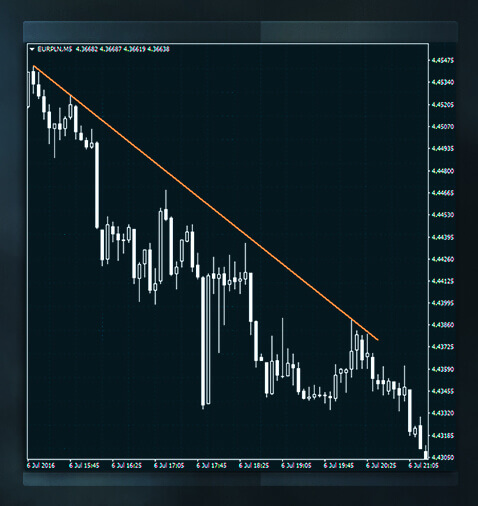 下降趨勢線在價格下行走勢中構成阻力;即價格觸及這條線通常會回落。在此阻力下,拋售壓力超過買盤,價格被推低。