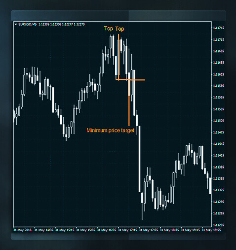- 通過估算頭部最高點至突破點的距離,可計算出最低價格目標。