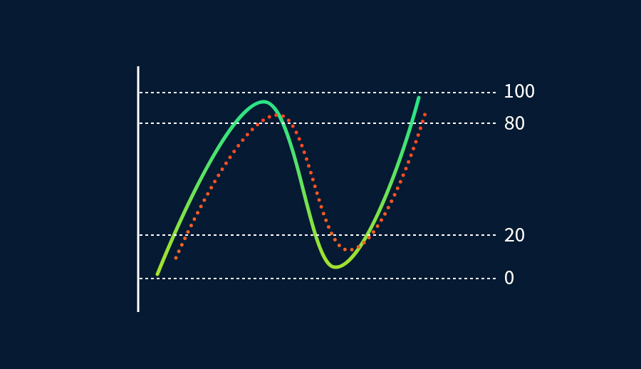 該指標高於80被認為是市場已達到極度超買水平的跡象,而低於20則表明市場已跌至極讀超賣水平。