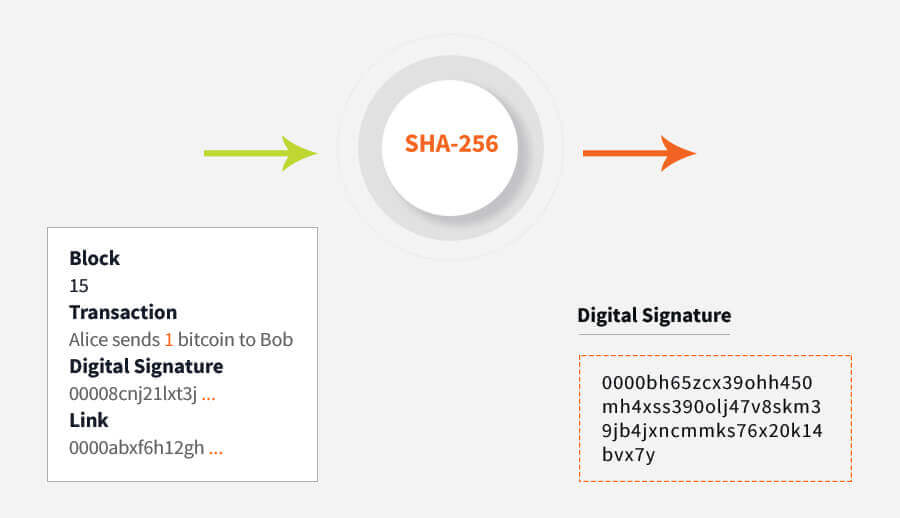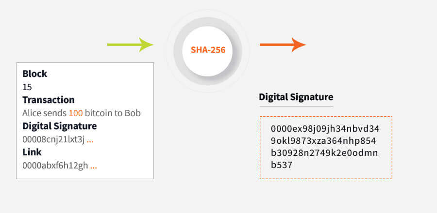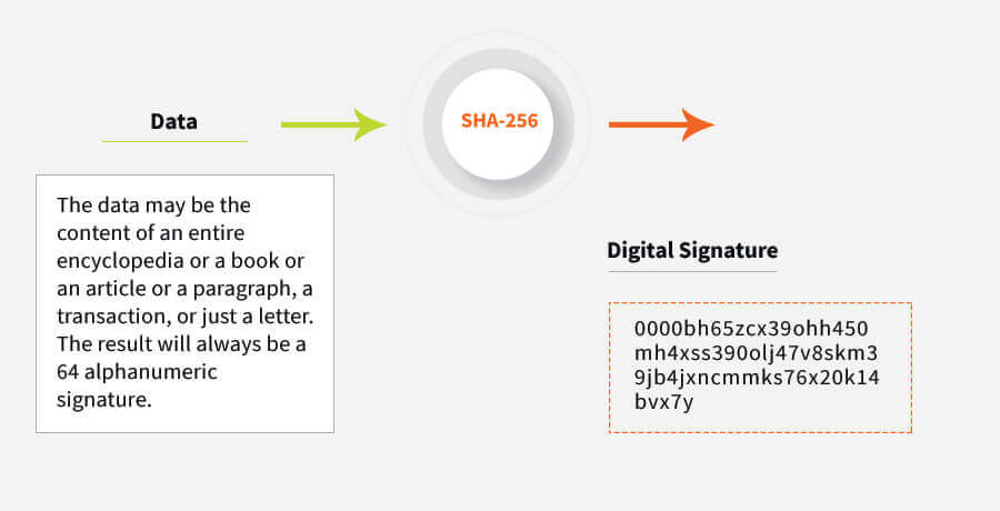 ومن المثير أنه إذا تغيير حرف أو رقم واحد فقط في البيانات، ستقوم الخوارزمية SHA-256 بإنتاج توقيع رقمي مختلف تمامًا. ولاحظ أيضًا أن كل توقيع رقمي يبدأ بأربعة أصفار.