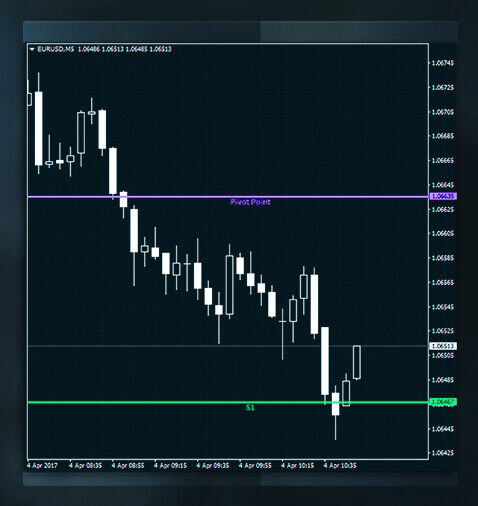 بالإضافة إلى ذلك، فعندما تكون الأسعار تحت النقطة المحورية فإنها قد تلتقي مع الدعم عند مستوى الدعم رقم 1 وترتد صاعدة من جديد نحو النقطة المحورية.