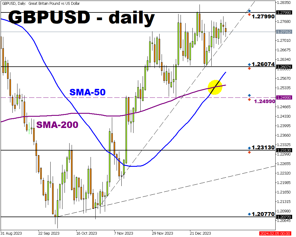 Desde ese nivel ha logrado superar las medias móviles de 50 y 200 días que ahora están formando el cruce alcista de “oro” dando mayor soporte a la actual tendencia, para llegar hasta 1.27990, donde ha corregido levemente.