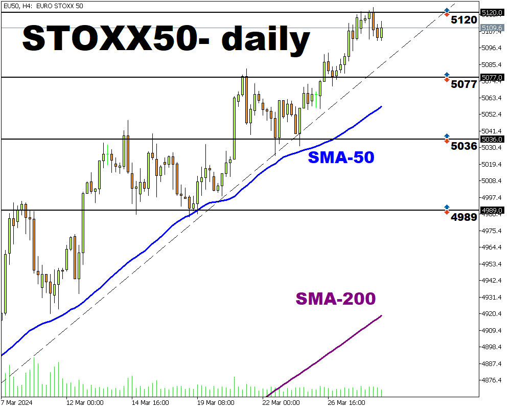 • Por el contrario, si el IPC sale en línea o por debajo de lo esperado, el STOXX continuará subiendo. Por lo tanto, buscaría superar en primer lugar los 5120, si supera ese nivel, iría por los 5200.