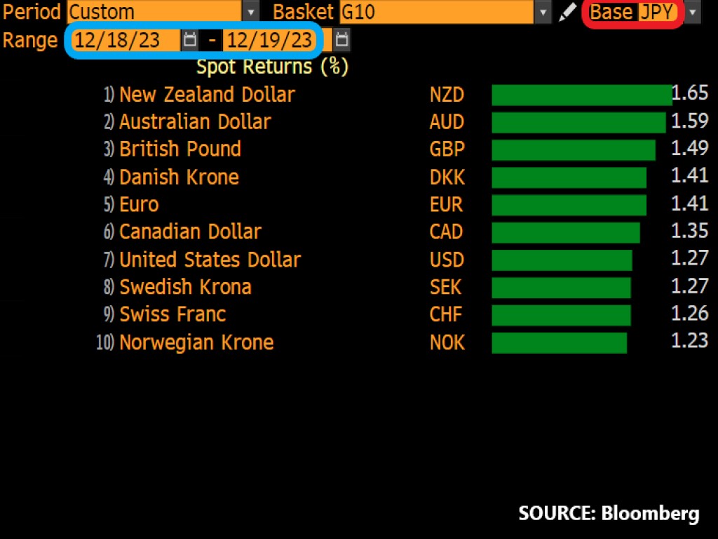 In fact, at the time of writing, JPY is currently weaker against all of its G10 peers.