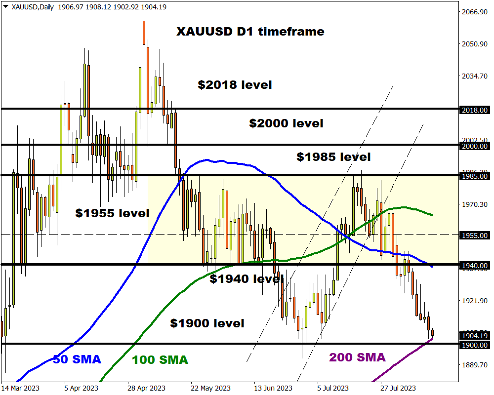 Looking at commodities, gold is wobbling above the $1900 support level while oil prices remain vulnerable as China growth fears hit the demand outlook.