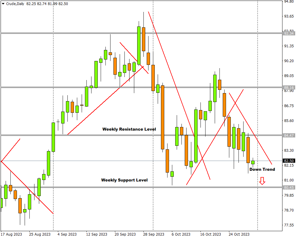 This represents a downtrend that could send prices toward the weekly support level of 80.45. However, bulls have the potential to jump back into the scene by starting a correction wave with their goal none other than the weekly resistance level at 84.47.