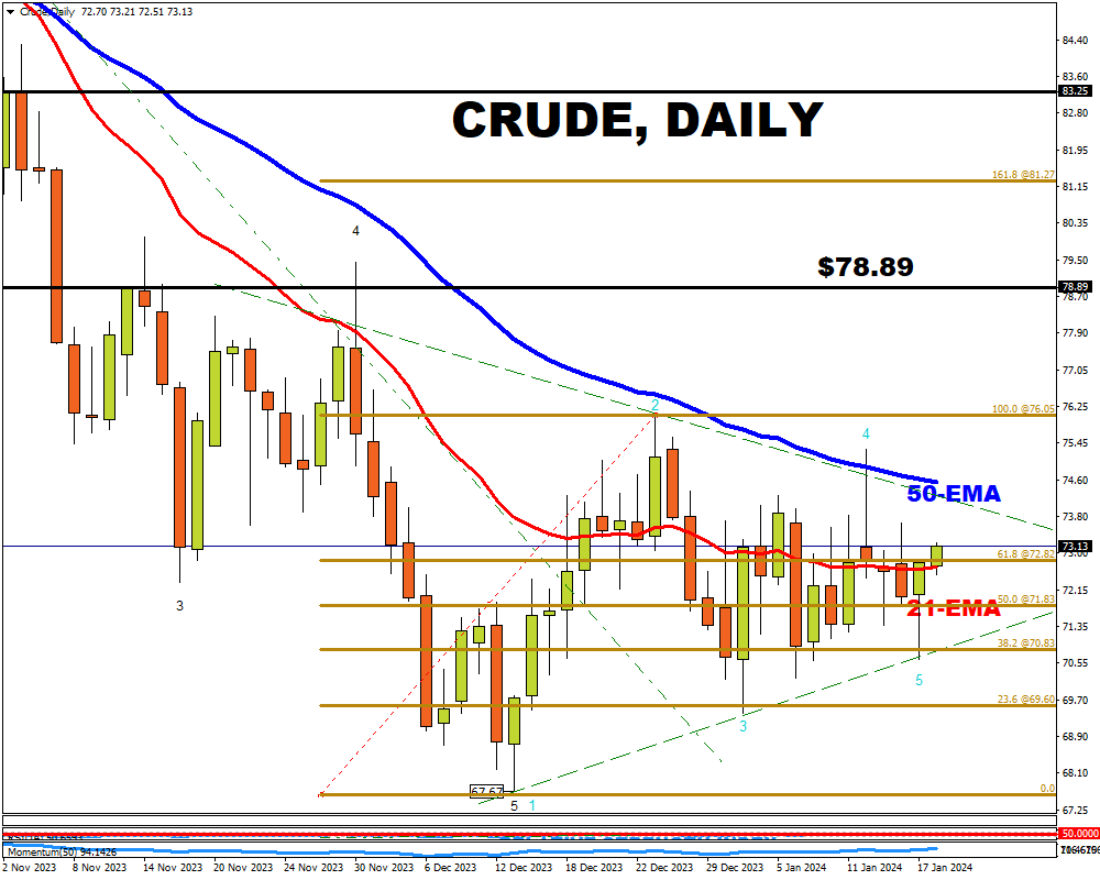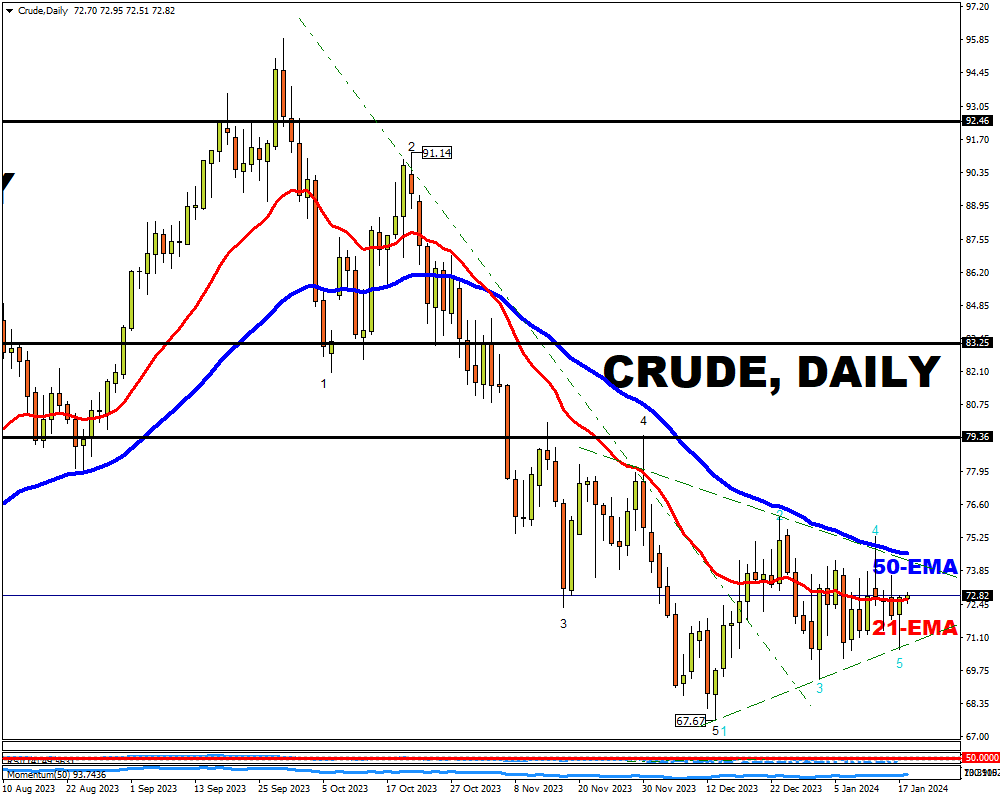 Continuous weakening demand and a failure to appropriately price in new geopolitical tensions in the Middle East may see crude prices break through the following price levels as it aims for lows below $67.67 (its most recent low posted on December 13th)