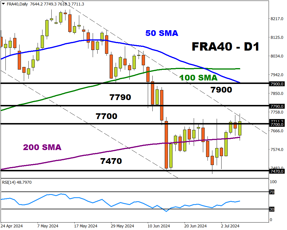 Looking at the charts, the FRA40 bounced from the 200-day SMA on Monday morning with prices trading above 7700 as of writing. Despite the political gridlock down the road, the overall market reaction seems positive.