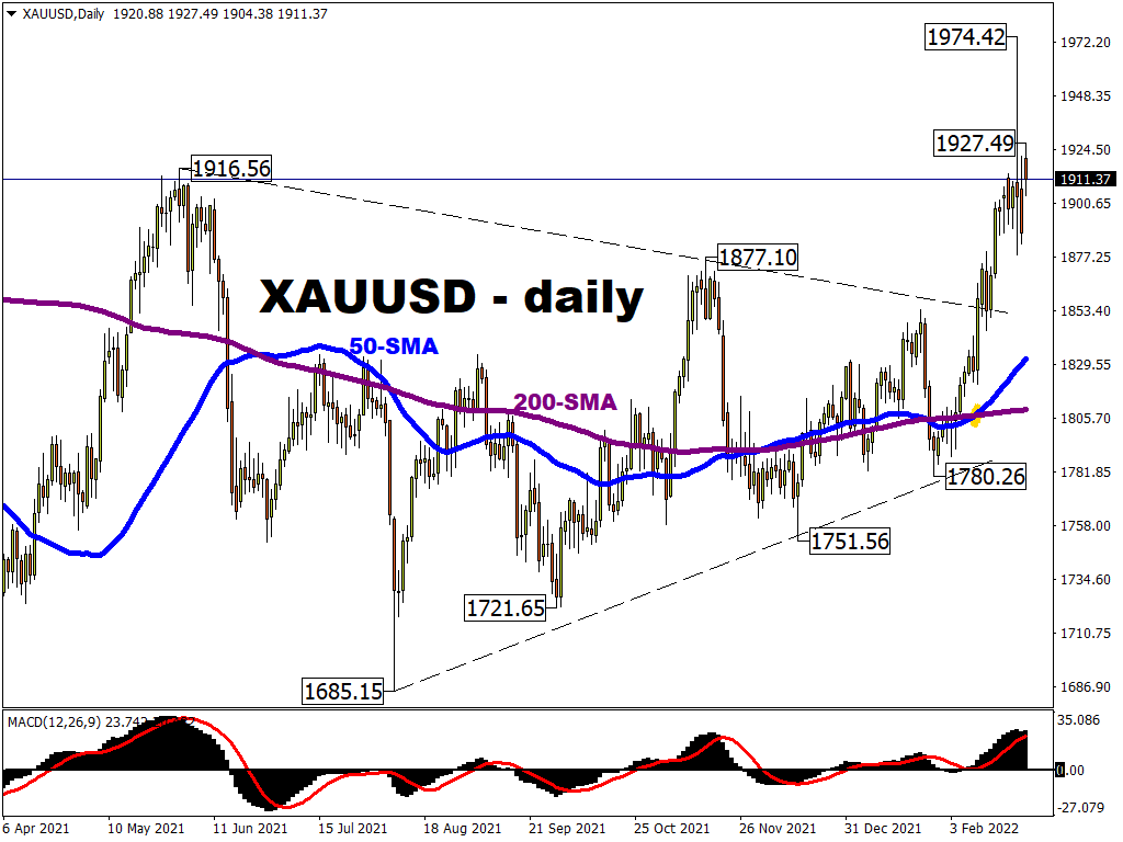 Gold shot higher, oil surged by $9 and safe haven currencies like the yen and swiss franc, as well as the US dollar, were bid. But markets have reassessed the risk and at present softer-than-anticipated sanctions are leading investors to fade some of these moves, as risky assets once more gain favour. Of course, the situation is still uncertain, and markets cannot rule out tougher restrictions down the road.